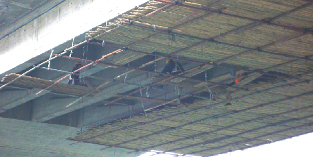 我司于2009年5月進場施工,根據設計圖紙,對引橋部分進行梁側粘鋼、梁底粘貼碳纖維布、梁體裂縫修復并灌注化學漿液處理、更換支座、橋臺進行灌注水泥漿,密實基礎,主橋箱內腹板粘貼碳纖維布、橋梁裂縫修復、并新增十條預應力索。