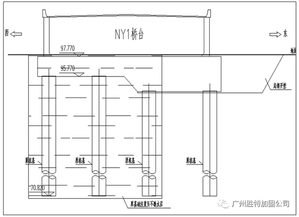 2、既有橋臺地面局部開挖至臺底,對既有橋高程和平面定位進行復核測量,并將復測結果反饋給設計及監理單位;