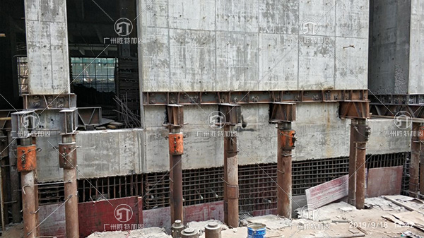 因功能改變需要增層并改造成核心筒,結構外挑部分承載力已不足以承受,需要從基礎增設剪力墻柱對外挑結構的剪力墻柱進行鋼筋對接置換混凝土為了保證結構上的安全,我司對該方案經過多次技術論證與調整,最終成功完成了對兩面大跨度剪力墻、柱的托換施工,且各項技術參數均實現在現行規范允許范圍內。