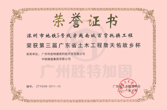 廣州勝特建筑加固公司經(jīng)典建筑托換加固工程案例-深圳地鐵五號線南城百貨商廈托換工程.本次工程是業(yè)內(nèi)少有的、高難度的地鐵穿越既有建筑物典型案例,在不停止使用功能條件下成功改造完成,使得南城百貨避免了被拆除帶來的上億元經(jīng)濟損失。南城百貨商廈為在營業(yè)商業(yè)廣場,地鐵需要穿越商廈邊跨整條軸線樁基,為保證上部商鋪超市正常運營,我司運用專利技術(shù),只在地下室施工,采用一托一吊的方式將隧道上方建筑物的原荷載成功轉(zhuǎn)移,達到了良好的經(jīng)濟效果和社會效果。本工程于2009年5月開工,于2010年2月順利竣工。于2011年獲得第三屆廣東省土木工程界詹天佑故鄉(xiāng)杯。