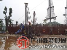 廣州加固公司-勝特加固典型地基加固實例-夏灣拿酒店游泳池加固工程: 泳池建成后,在蓄水后的使用過程中,由于地基承載力不足發生較嚴重的沉降現象,同時由于沉降產生的泳池裂縫導致池水嚴重滲漏,故急需進行地基基礎加固、裂縫修復施工。東方夏灣拿花園酒店游泳池位于酒店西側,大體呈三角形,其中兩直角邊緊臨酒店主體結構。泳池水面面積1500m2,設計水深0.6~1.2m。水池整體置于約4.5m厚的回填土之上。回填土采用松木樁擠密處理,木樁直徑為Φ300,設計樁長4m,實際入土深度約2.0m。泳池底板為整體現澆鋼筋混凝土底板,板厚250mm,混凝土強度等級為C25。我公司技術研發部門嚴格設計地基加固方案、各部門各方通力合作,該酒店游泳池加固成功完成。