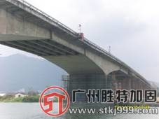 廣州勝特加固公司橋梁加固工程案例之新會區省道S270虎坑大橋維修加固工程。該橋已運營17年,需進行老舊橋梁改造,2007年10月至2008年11月對進行多次的橋梁檢測鑒定,檢測結論定性為四類橋梁,主橋和引橋都出現了不同程度的病害,我方采用橋面粘貼碳纖維加固、橋梁更換伸縮縫、引橋加固、粘貼鋼板、預應力鋼絞線施工、環氧砂漿修補、粘貼玻璃纖維布、裂縫灌漿修補等加固方法進行橋梁加固處理,該工程列為江門市的重點工程。
