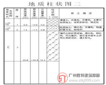 場地地基由人工填土(Qml)、第四系沖淤積層(Qal)、第四系殘積層(Qel)及古近系始新統華涌組(E2h)“紅層”碎屑巖組成,工程地質綜合剖面共分10層,自上而下的巖性特征分述如下:第1層,人工填土(Qml),層厚0.50~3.0m,平均1.56m,土層由粉質粘土及風化砂等回填而成,輕度壓實,均勻性差,承載力低。第2層,粉質粘土,層厚0.60~10.30m,平均3.08m,土層由粉、粘粒組成,飽和,可塑~硬塑為主,局部軟塑,含沙粒,承載力不高。第3層,淤泥質土,層厚0.90~12.10m,平均5.54m,土層呈灰黑色,手拈粘滑,飽和,流塑,局部夾沙粒層及腐植物,承載力極低,抗剪強度低,為不良地基。第4層,粉砂、細砂,層厚2.0~3.1m,平均2.74m,砂土層顆粒均勻,飽和,零星分布,中密為主,局部密實,含有粘性土及中粒砂,承載力低。第5層,粉質粘土,層厚2.1~6.6m,平均4.14m,由粉、粘粒組成,飽和,可塑為主,局部軟塑或硬塑,局部含砂粒,承載力不高。第6層,中砂,層厚4.5~5.0m,平均4.75m,砂土層顆粒均勻,飽和,中密為主,局部稍密,含有較多粉細砂及粗粒砂,有一定承載力。第7層,殘積土,層厚1.0~9.1m,平均3.12m,按土性分為殘積粉質粘土、殘積粉砂、細砂及殘積中砂、粗砂。局部分布,有一定的承載力。第8層,全風化巖帶,層厚0.60~10.5m,平均3.66m,巖性為泥質粉砂巖、粉砂巖、細砂巖及中砂巖,局部分布,承載力稍高。第9層,強風化巖帶,層厚2.0~27.8m,平均15.95m,巖性為泥質粉砂巖、粉砂巖、細砂巖、中砂巖及粗砂巖,層位穩定,承載力較高,均可作預制樁基礎持力層。第10層,中風化巖,層厚在6.1~17.8m,平均12.85m,巖性為泥質粉砂巖、粉砂巖及細砂巖,承載力高。