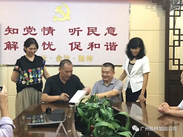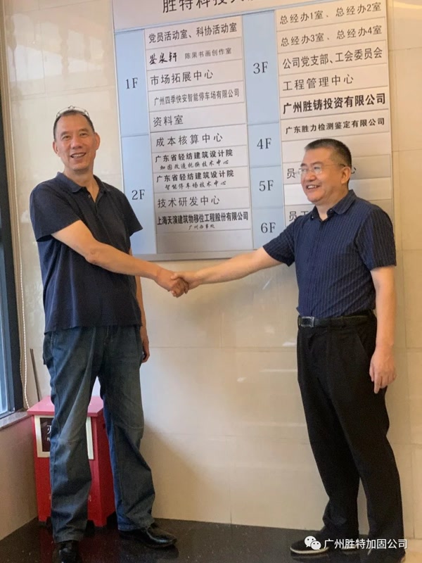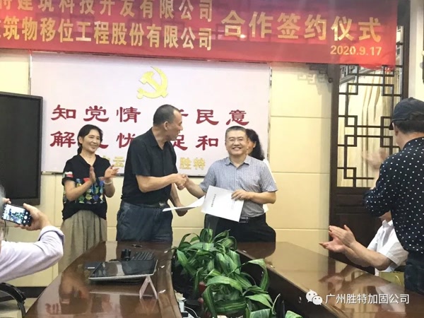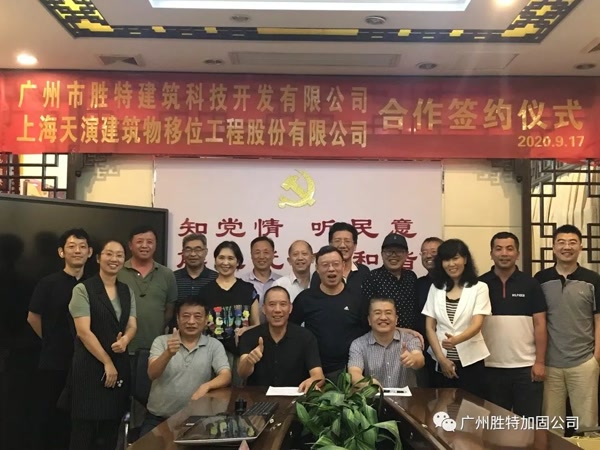 9月17日,我司董事長吳如軍和上海天演建筑物移位工程股份有限公司藍戊己總經理在全國十多位建筑加固改造、糾傾托換、頂升平移等特種行業專家的共同見證下,鑒署了合作協議,并于9月18日(碰巧我司成立22周年之時,勝特成立于1998年09月18日)上午在我司進行上海天演建筑物移位工程股份有限公司廣州辦事處的揭牌儀式,標志著建筑加固改造、糾傾托換行業和建筑頂升平移行業的全國兩家高新技術領軍企業強強聯合,旨在推動行業技術進步,各自發揮自身優勢,促進企業良性發展。