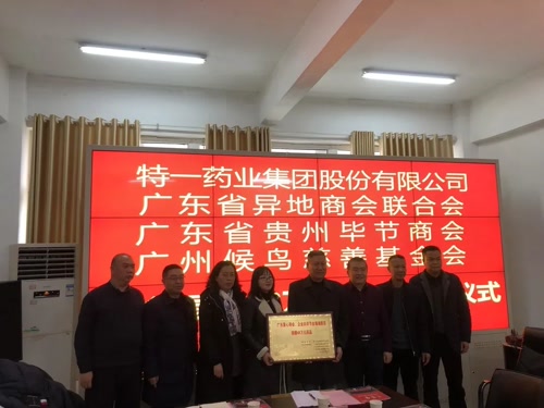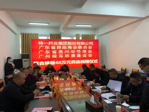 座談會后,舉行了捐贈儀式。由廣東省異地商會聯(lián)合會、廣州候鳥慈善基金會、廣東省貴州畢節(jié)商會聯(lián)合“特一藥業(yè)集團(tuán)股份有限公司”捐出價值48萬元藥品,用于公益和幫扶老弱群體。