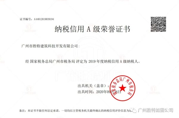 近日,國家稅務總局廣州市稅務局公布了2019年納稅信用等級情況,廣州市勝特建筑科技開發有限公司(以下簡稱“我司”)榮獲“納稅信用A級榮譽證書”,被評為“2019年度納稅信用A級納稅人”。