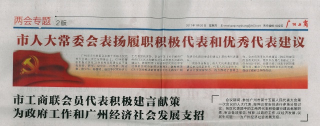 廣州市人大常委會在第十五屆人民代表大會第一次會議預備會上,對94名履職積極代表及33件優秀代表建議給予通報表揚。 表揚決定指出,市人大代表通過提出建議參與國家事務、代表人民當家作主、依法行使國家權力,有力推動了各項工作。全市負責承辦代表建議、批評和意見的各有關機關、組織以辦理代表建議工作作為問計于民、問需于民、問政于民的重要方式,解決了代表和群眾關注的問題,促進了政府工作的改進。 市工商聯會員代表積極建言獻策 為政府工作和廣州經濟社會發展支招 會議期間,參加廣州市第十五屆人民代表大會第一次會議的人大代表,按照議程安排進行多場分組討論。各區代表團中的工商界代表積極履行建言獻策職責,審議各項報告、預算談政府工作,談經濟發展,談民生問題……為廣州市經濟社會發展支招。 廣州市勝特建筑科技開發有限公司董事長吳如軍先生現任廣州市第十五屆人大代表,白云區第十屆政協常委。積極履職,為社會發展建言獻策。