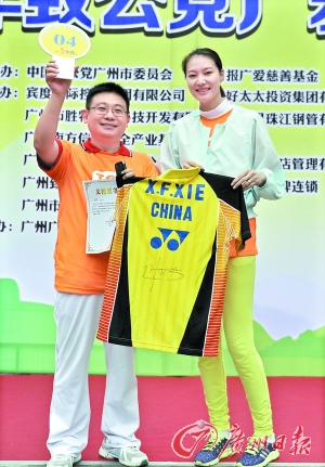 謝杏芳和林丹這對關愛慈善的運動明星捐出了自己的簽名球衣和簽名球拍做慈善義拍,林丹簽名球拍拍出了7萬元的高價。活動累計籌集愛心善款60萬元左右,全部款項都將匯入廣州日報廣愛慈善基金 “致公黨關愛貧困學生”專項,專門用于對困難學生的幫扶項目。