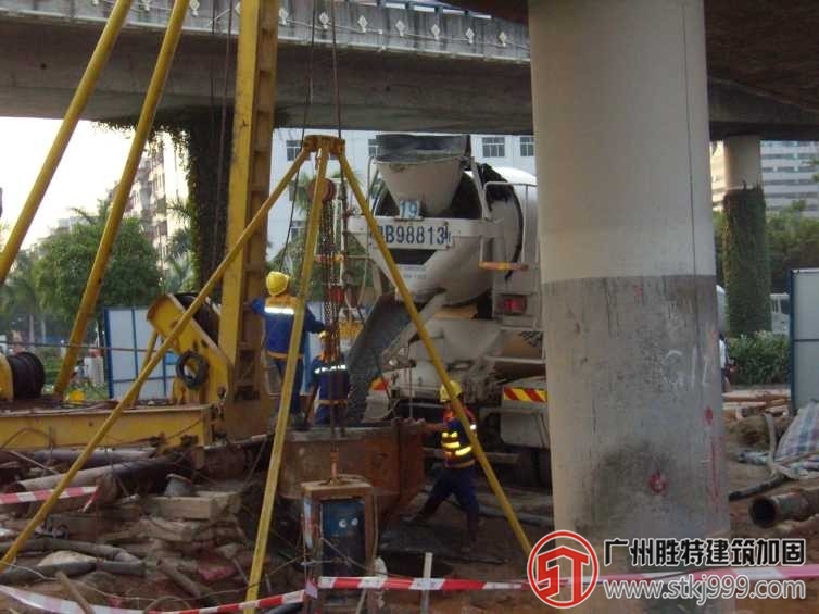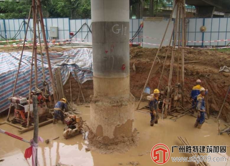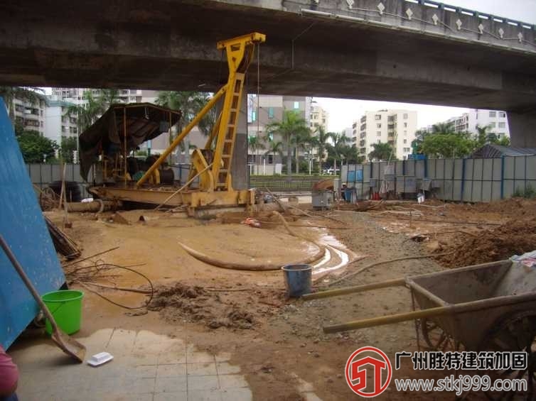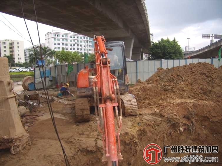 深圳地鐵翻身站至靈芝公園站區間隧道穿越寶安區創業立交橋,與其中的四個橋梁樁基(A19I、G1I、J1I、R4I)發生干擾,需進行樁基托換,創業立交橋橋幅寬度為兩車道,下部結構為單柱橋墩形式。樁基采用鉆孔灌注樁,直徑1.5米。深圳地鐵5號線翻身站至靈芝站區間隧道埋深約22米,隧道通過地層為砂質粘性土、全風化、強風化、微風化巖層。本橋梁加固工程于2008年開工,于2009年順利完工,經施工前、中、后的監測,各項數據均在控制值以內。目前盾構已通過,創業立交橋仍在正常使用,地鐵病害處理,該項目的施工質量及效果得到了地鐵公司的高度贊揚。