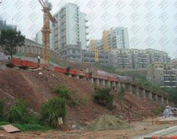 東莞市下橋小學邊坡噴錨支護工程簡介:該邊坡位于東莞市東城區下橋小學教工宿舍旁,邊坡高7.58m-13.83m不等,坡角約75度左右,巖土層為砂巖殘積土強風化。由于坡度較大,場地窄小,為防止山體大面積滑坡,保證教師和學生們的安全,采用噴錨支護穩定方法對該山體進行坡體噴錨加固處理