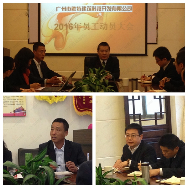 新春伊始,萬物更新。“一年之計在于春”,2月15日(正月初八),廣州勝特公司開工動員大會在勝特大廈會議一室順利召開。吳如軍董事長攜唐軍副總經理、唐穎副總經理、吳軍勝副總經理向參會的全體員工拜年,送上新春祝福。