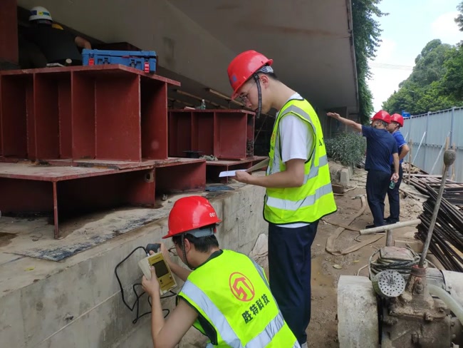 2022年7月23日,頂升托換前一天,我司施工負責人、技術負責人以及各崗位工作人員提前到達頂升現場對設備儀器均進行檢查及調試,為確保托換頂升過程設備儀器安全正常運行、確保托換頂升順利完成做了充分的準備工作。