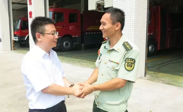 2017年7月29日上午,在“八一”建軍節來臨之際,廣州勝特副總經理唐穎女士、吳軍勝先生,黨支部書記、工會主席唐野先生帶領公司黨員,部分在司員工組成的擁軍慰問團來到金沙洲消防中隊,慰問堅守在滅火救援備戰一線的消防官兵,向日夜奮戰在戰斗第一線的消防官兵致以節日的祝福和親切的問候。