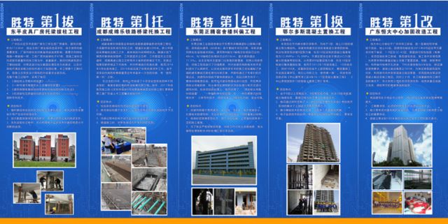 展會上我司展示了五個“第一”案例分別為:“勝特第一拔”、“勝特第一改”、“勝特第一換”、“勝特第一糾”、“勝特第一托”,上述案例均為全國首創,我司所運用的建筑加固改造、托換糾傾領域的綠色技術都是我司的核心技術,擁有多項專利維權。