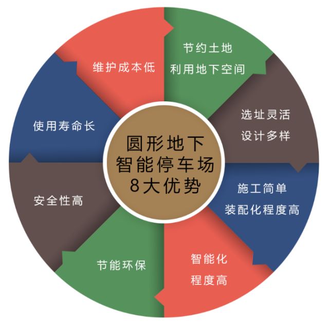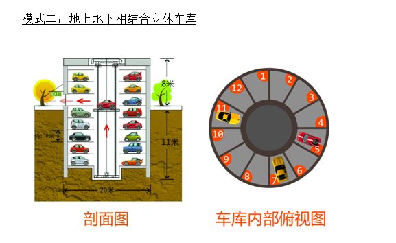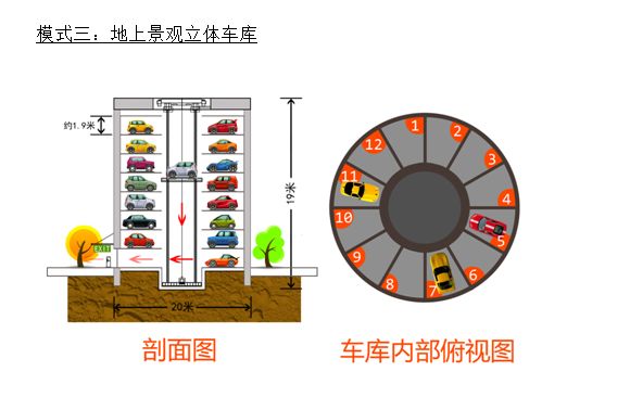 整個車庫只需占地直徑有20m,深15-20m的立體空間,即可擁有108個泊位,車庫內設有消防、防排水、照明、通風、檢修走道等附屬設施。