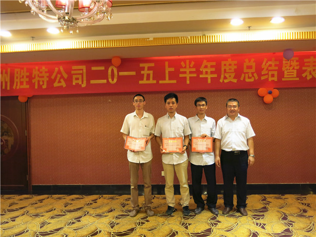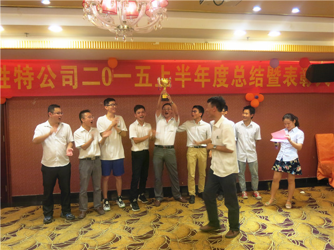 一、頒發第一屆“勝特杯”籃球友誼賽的冠軍獎; 二、頒發2015上半年度進步員工獎; 三、頒發2015上半年度優秀員工獎; 四、董事長致辭。