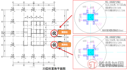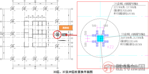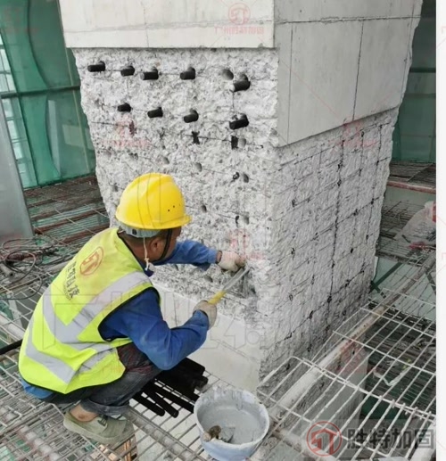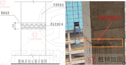 現需要對23層兩根柱,33層、 37層、39層各一根柱,總共5根柱局部區域采用置換缺陷層加固處理。