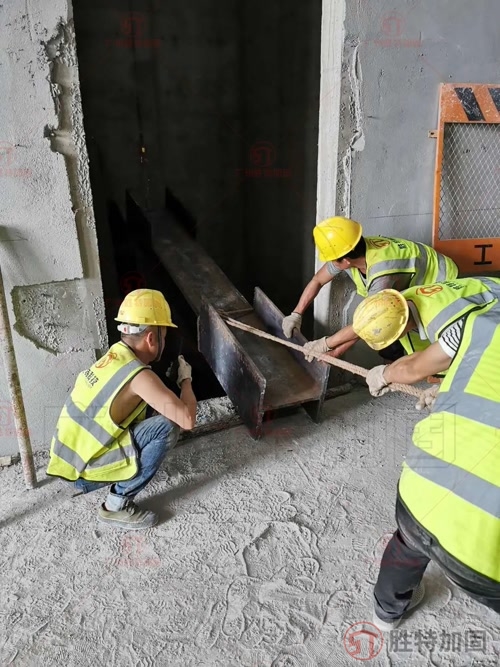 由于本項目置換位于23、33、37、39層,用于制作托盤體系的鋼梁質量較大,材料運輸較困難。我司擬利用電梯井道內安裝卷揚機,吊裝轉運。
