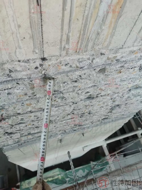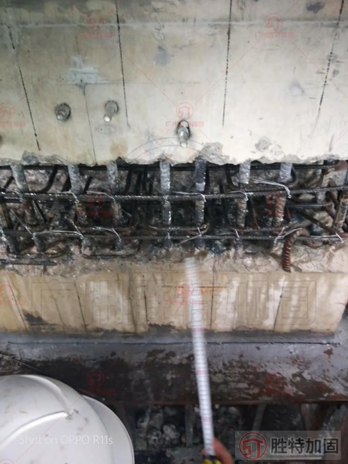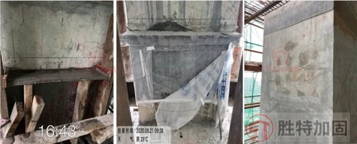 經檢測鑒定9m高跨層柱5根柱中施工縫位置存在不同程度的混凝土質量缺陷,對構件的承載功能或使用功能有一定影響。