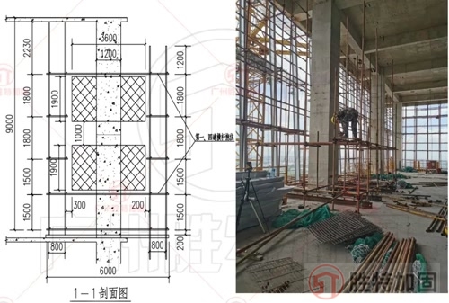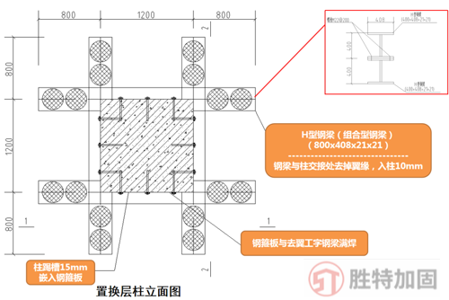 結構置換具體做法采用我司專利技術《一種鋼托盤支撐傳力系統》(專利號ZL201310044998.0)