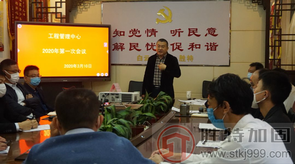 3月10日上午,廣州市勝特建筑科技開發有限公司(以下簡稱“我司”)工程管理中心2020年第一次工作會議暨復工復產推進會在我司會議1室召開,董事長吳如軍出席會議,本次會議由公司副總經理唐軍主持。