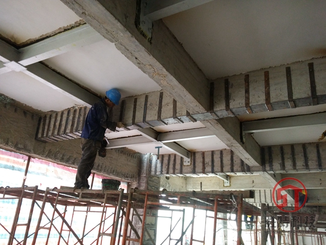 涉及加固工藝包括植筋、梁加大截面、梁底粘鋼、柱包鋼、板底增設(shè)型鋼梁。這些看似簡單而常規(guī)的加固工藝在實際施工中,由于工期緊卻給工程管理中心的同事莫大的考驗。1300萬造價的加固改造項目要求45天完工就是一個考驗,為滿足甲方工期要求,我司在春節(jié)期間就把設(shè)備、材料和各班組人員配備到位,為“打硬仗”做好前期準(zhǔn)備工作。