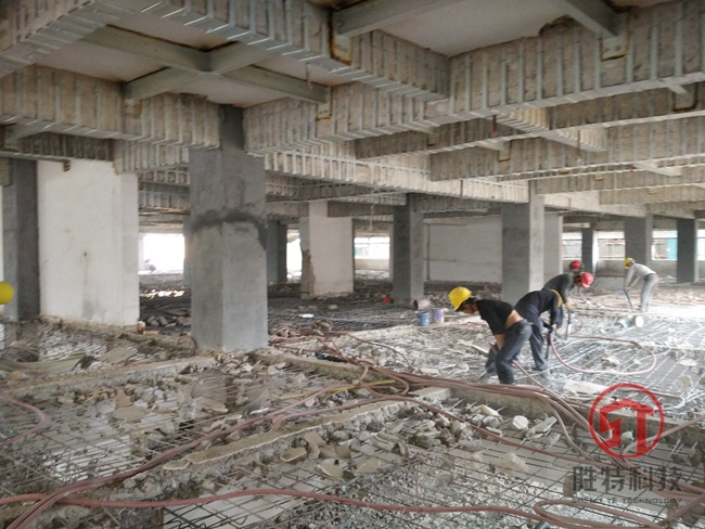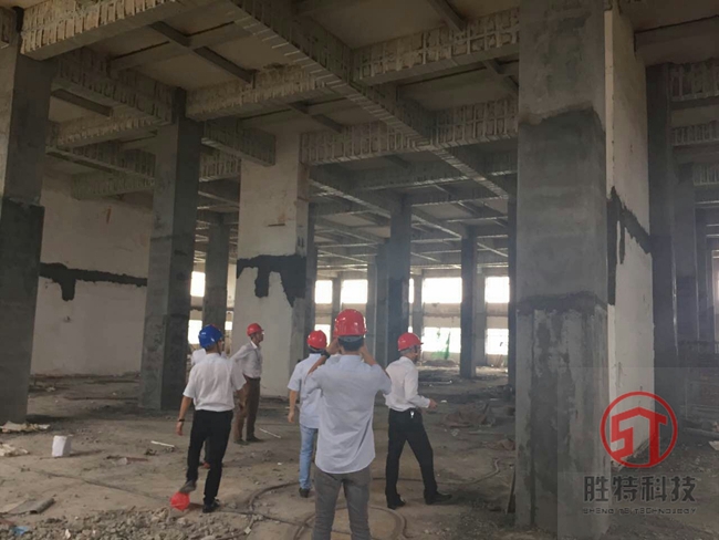 我司承接的廣州市港矩電子有限公司廠房改造加固工程,建筑約竣工于1993年,是一個綜合性加固改造項目。項目總建筑面積約20000㎡,9層框架結(jié)構(gòu),原設(shè)計樓面荷載為每平方米350公斤。現(xiàn)因功能改變樓面荷載需提高到每平方米800公斤,局部1噸。同時為滿足使用要求,需拆除原2、4、6、8層梁板水平構(gòu)件。