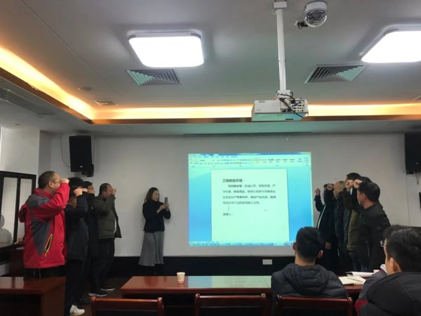 羅老師分別就憲法、刑法新增條例、新安法等等法律法規進行詳細的介紹,讓工程管理中心人員以及各班組人員有更進一步提高建筑施工安全生產質量的意識。隨后,吳如軍董事長與工程管理中心人員以及各班組人員制定并簽署安全生產責任書。