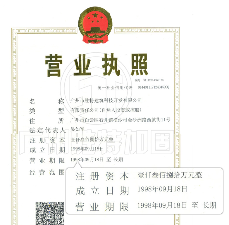 關(guān)鍵詞:企業(yè)經(jīng)營年限 |廣州市勝特建筑科技開發(fā)有限公司已經(jīng)踏入第18個年頭!怎樣來辨別經(jīng)營年限?教大家最簡單的,看營業(yè)執(zhí)照。政府認證的資料最可靠,嘴巴說出來的話可以騙人,但是營業(yè)執(zhí)照不騙人。那些什么成立10年啊,15年啊,17年啊,19年啊,20年啊,你確定你拿著的是勝特公司的營業(yè)執(zhí)照?拿出來分享一下唄~注意看營業(yè)執(zhí)照的公司成立時間!年均200個項目,保質(zhì)保量!