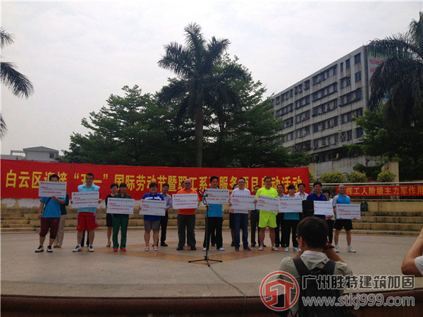 為迎接“五一”國際勞動節,白云區總工會于4月29日在太和鎮文化廣場舉辦了“迎接五一國際勞動節暨職工系列服務項目啟動活動”。勝特建筑加固公司工會委員會組織市場拓展中心、綜合研發中心、網絡營銷中心的同事及工程管理中心數名工人組成了參賽團隊,代表金沙街道工會參加了活動。