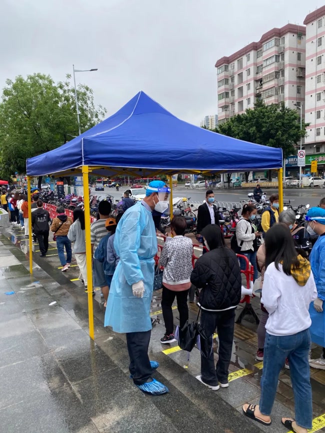羊城四月,芳菲馥郁,春色依舊。突如其來的疫情,猶如“倒春寒”令人不寒而栗。但街頭巷尾的那一抹志愿藍,卻讓人溫暖不已。聞令而動,抗疫有我4月19日,陰雨寒冷天氣,但我司的抗疫一線志愿者唐野、許曉茵依然堅守在核酸檢測點,協助街道開展核酸檢測工作。這是我司自4月8日以來派出的近40名志愿者中的第七批志愿者了。
