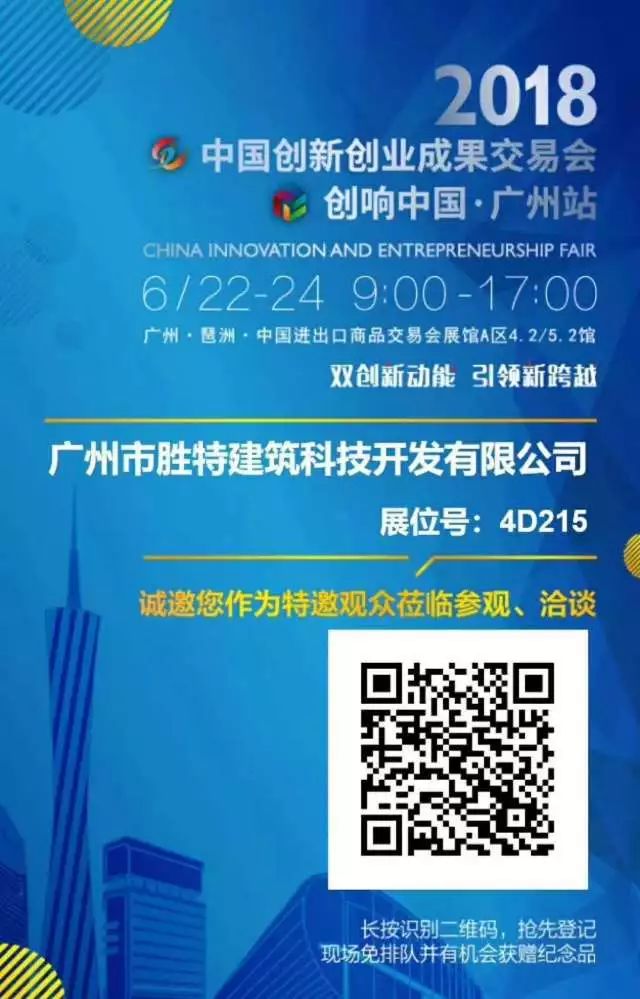 自2015年起,廣州市勝特建筑科技開發有限公司至今已連續參加了四屆,本屆創交會于6月22日至24日為期三天在廣州琶洲國際會展中心舉辦,我司有2個項目入選參展,分別是建筑加固改造、托換糾傾領域綠色技術以及四季快安智能停車場技術。