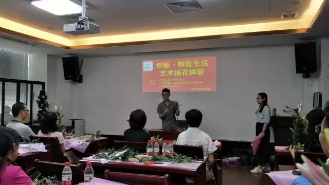 插花活動由精通東西方插花藝術的廣州花卉研究中心的藝術導師進行現場指導授課。 導師從插花藝術的起源、發展、文化、分類、工藝等多個方面,對插花進行了詳細的介紹,對插花的基本方法進行現場講解。