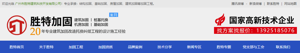 隨著社會的發展,市場競爭越來越激烈,有靠實力提高市場份額的,也有靠打擦邊球、走后門甚至是不法手段來尋求發展的企業。20年的企業,廣州市勝特建筑科技開發有限公司(下稱:廣州勝特加固公司)20年來,就憑借“誠信”二字立足社會,打拼市場,用質量,用口碑征服客戶。以及 “優勝 特別 務實 開拓”的8字企業核心價值理念,打造出國內專門承接加固改造工程的唯一高新技術企業!