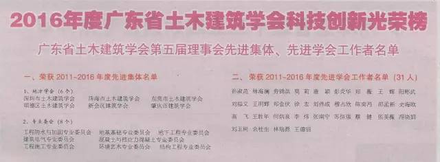廣東省土木建筑學會第六次會員代表大會暨頒獎會于2017年6月19日下午在廣州召開。 會議由趙資欽常務副理事長主持,廣東省科學技術協會唐毅黨組副書記、中國土木工程學會劉士杰副理事長兼秘書長、中國建筑學會仲繼壽秘書長、廣州市住房和城鄉建設委員會李敏霞總工程師、廣東省住房和城鄉建設廳市場處王瑜調研員、廣東省土木建筑學會第四屆理事會理事長陳之泉、廣東省土木建筑學會第五屆理事會理事長勞應勛、廣東省土木建筑學會第五屆理事會副理事長吳碩賢院士等領導出席了會議。各領導、嘉賓、第五屆理事會理事、顧問、特聘資深專家及領獎代表等290多人參加了會議。 廣州市勝特建筑科技開發有限公司副總經理唐穎高級工程師榮獲“2011—2016年度廣東省土木建筑學會先進個人”稱號,并高票當選廣東省土木建筑學會監事會監事,勝特公司董事長吳如軍高級工程師連任廣東省土木建筑學會理事會理事,唐穎高工代表出席本次會議并接受表彰。 唐毅副書記、劉士杰秘書長、仲繼壽秘書長、王瑜調研員分別作了重要講話,他們對過去一屆學會工作取得的成績給予了充分的肯定,對學會今后的發展提出了殷切的期望,領導的肯定和鼓勵是學會工作的動力,學會將朝著建設“活力、特色學會”的目標而不懈努力,開創工作新局面。