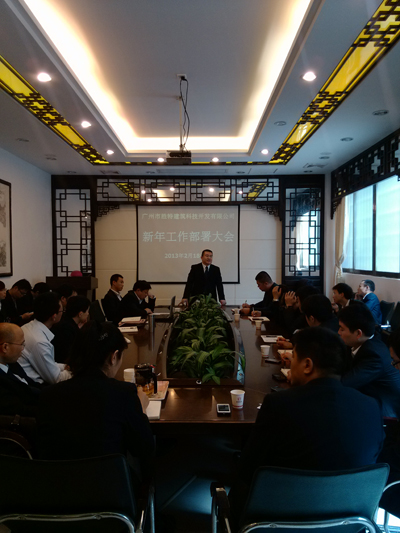 2013年2月18日農歷初九,是蛇年春節長假后第一天上班,勝特加固公司全體員工歡聚一堂,互致問候,公司上下洋溢著輕松喜慶的氣氛。中午12:40,在公司會議1室召開了新年工作部署大會。會議由董事長吳如軍先生主持,與會人員有包括常務副總經理先生、副總經理唐軍先生、副總經理唐穎女士及公司其他管理人員,共計30余人。
