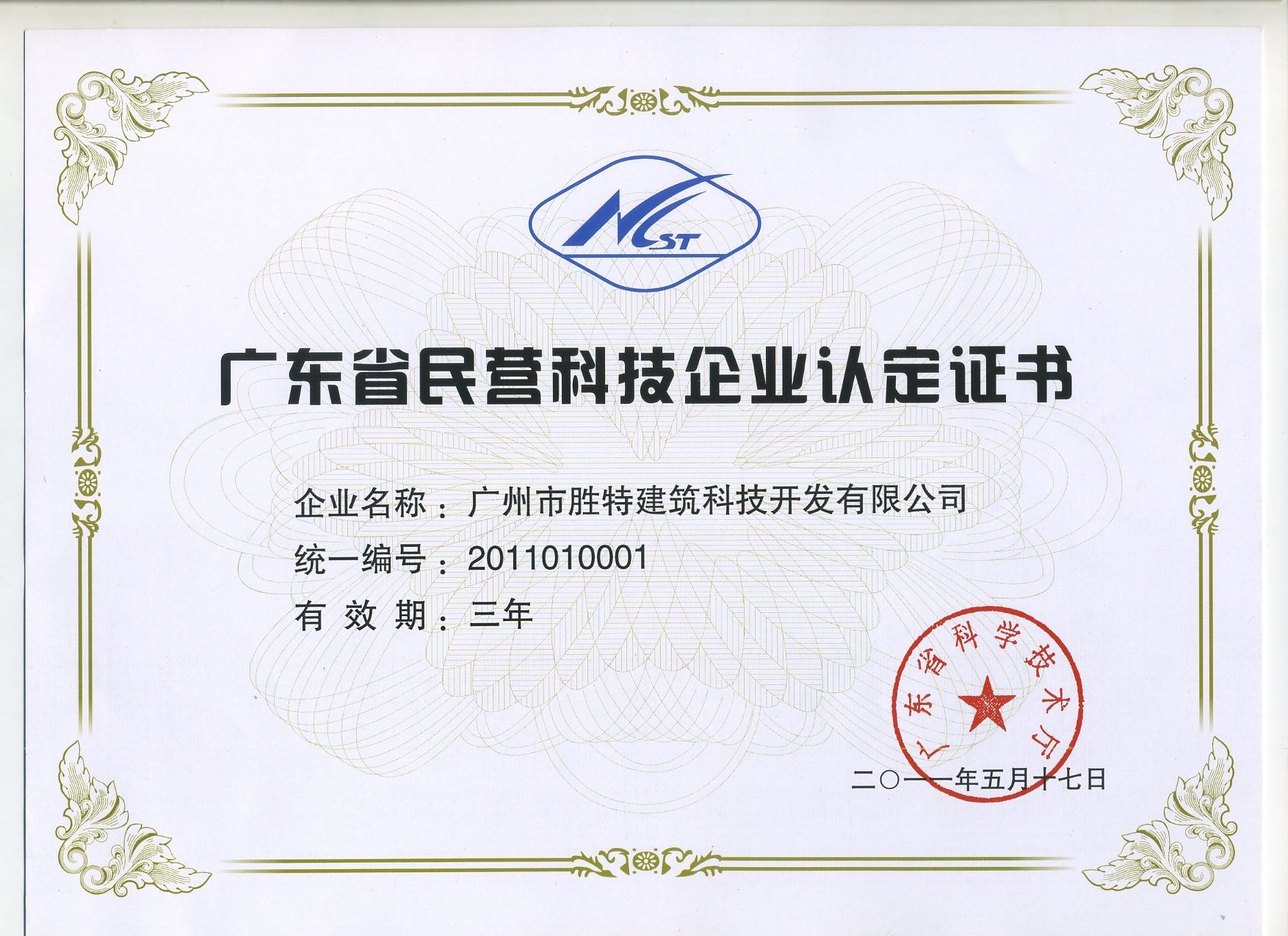“根據(jù)《廣東省民營科技企業(yè)認定辦法》,經(jīng)審查,同意廣州市勝特建筑科技開發(fā)有限公司等企業(yè)為廣東省民營科技企業(yè)。