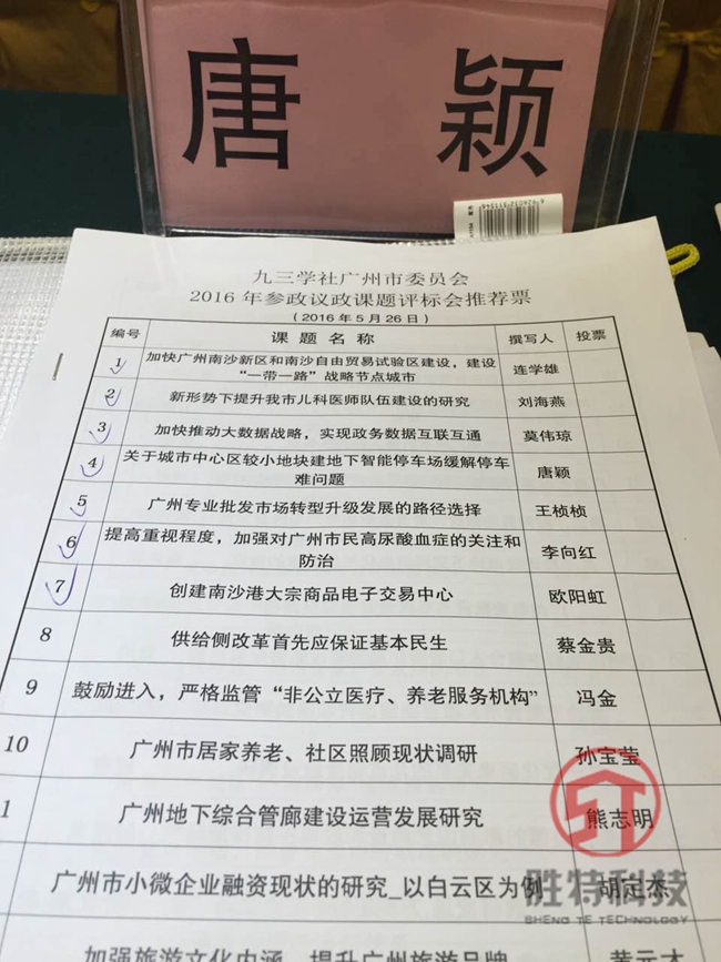 2016年5月26日,我司唐穎副總參與九三學社廣州市委員會參政議政課題招標會議,會議由社巿委林沛勛副主委主持,王桂林副主委參加。總共59個包括民生、醫療、交通、停車、環境保護、養老等多個行業議案招標,社市委機關、各基層主委、議案第一作者共計80多人參加。