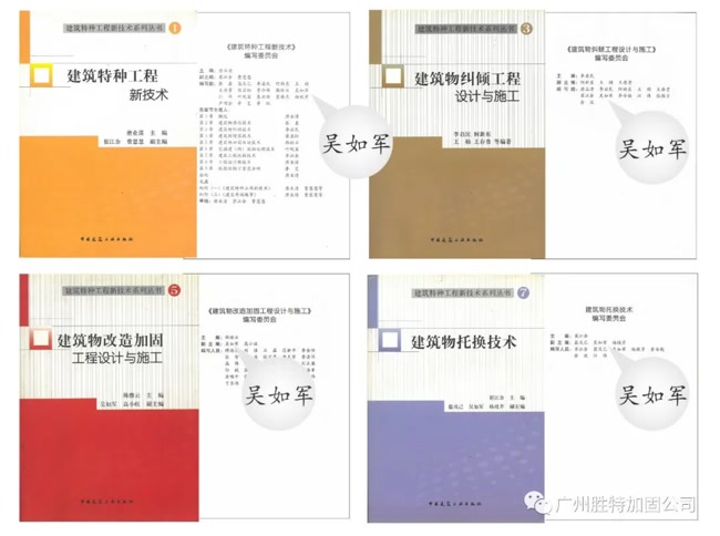 本書是公司二十周年慶典給予行業(yè)的饋禮,是我們多年來高難度工程的典型案例及各種特種新技術(shù)的匯編,供建(構(gòu))筑物的加固、改造、糾傾、托換工程的科研、設(shè)計(jì)、施工等工程技術(shù)人員和相關(guān)專業(yè)學(xué)校師生參考和借鑒。吳如軍董事長為該書主編人,該書已于2018年12月起發(fā)行,在各大書店有售。
