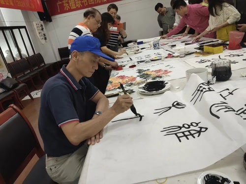 這么多畫家加盟楷書委的活動,這也是李賜麟副院長深刻的認(rèn)識到,如果書畫活動僅有書法家參加,而沒有畫家的加盟,顯然是味道不夠,所以他每次的雅集都邀請部分畫家來參與,今天楷書委的許多的書法家也寫了很多精彩的作品,如 謝曜徽,趙振威,湯啟聯(lián),劉佑華,梁儉宏和湯榮焜等。他們的書法各有傳承,異彩紛呈,半天功夫就畫了近50張書畫作品,琳瑯滿目,四壁生輝,所有的作品贈與我司作為開展文化活動的禮品。