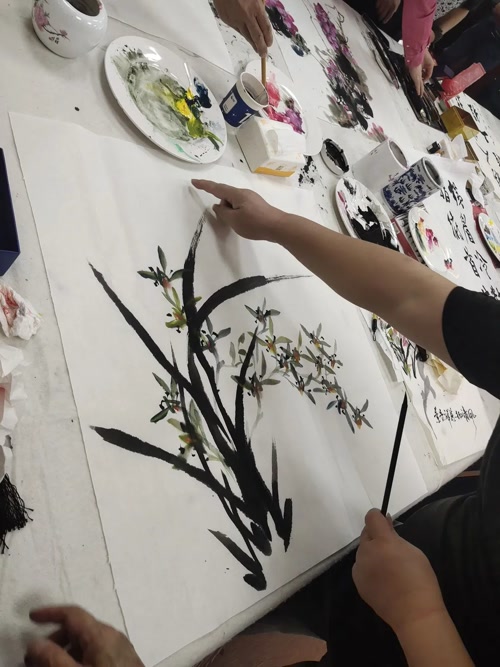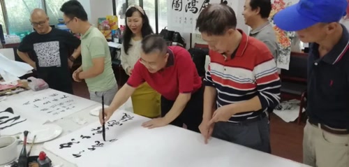 在現(xiàn)場,書畫院的領(lǐng)導(dǎo)要求所有的參與者要執(zhí)行紀(jì)律,桌面不能有垃圾,地上不能有墨跡,洗手間不能有污水,所有的成員都認(rèn)真地按照這些要求都做到了!這令吳董事長大吃一驚,為廣東楹聯(lián)學(xué)會書畫院紀(jì)律嚴(yán)明,作風(fēng)嚴(yán)謹(jǐn),深感欽佩。大家在陳玉婷美妙的琴聲中邊寫邊畫,同時(shí)又高聲歌唱,李賜麟團(tuán)長還拉起了小提琴。夫唱婦隨,其樂融融,這也是其他藝術(shù)團(tuán)體開展書畫雅集非常少見的。