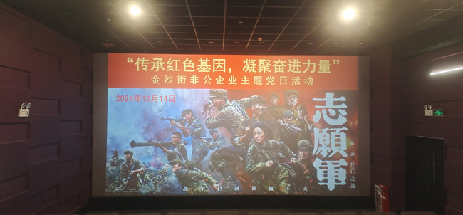 2024年10月14日,為增強愛國意識,激勵黨員傳承黨的優良傳統,加強我司黨員與在職職工們的政治思想教育,我司黨支部與金沙街商會黨支部聯合組織開展“傳承紅色基因,凝聚奮進力量”觀影主題黨日活動,觀看《志愿軍-存亡之戰》。