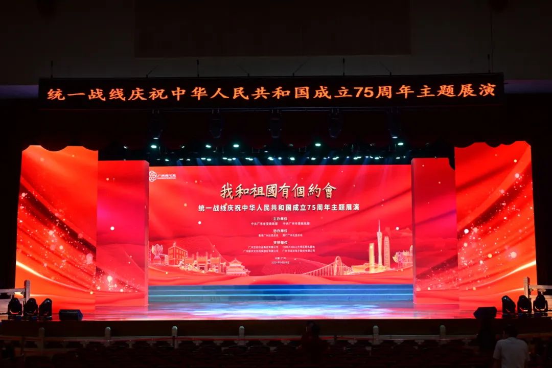 9月26日,由廣東省委統(tǒng)戰(zhàn)部、廣州市委統(tǒng)戰(zhàn)部聯(lián)合主辦,香港廣州社團(tuán)總會(huì)、澳門廣州社團(tuán)總會(huì)共同協(xié)辦的“我和祖國(guó)有個(gè)約會(huì)”——統(tǒng)一戰(zhàn)線慶祝中華人民共和國(guó)成立75周年主題展演在廣州中山紀(jì)念堂舉辦。省、市統(tǒng)一戰(zhàn)線有關(guān)單位、團(tuán)體負(fù)責(zé)人,港澳臺(tái)僑代表人士,以及統(tǒng)一戰(zhàn)線相關(guān)人員近2500人參加,我司黨支部書記、工會(huì)主席唐野率隊(duì)參加。