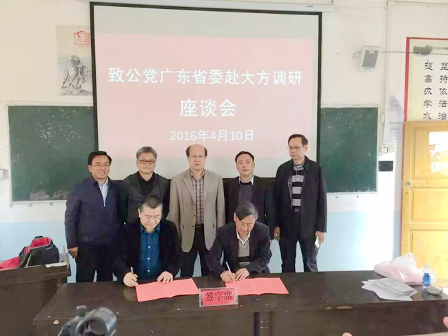 陳德奉向調研組一行詳細介紹了大方縣社會經濟發展情況以及企業參與精準扶貧所取得的成果。陳德奉表示長期以來,在致公黨中央、農工黨中央、各級地方組織以各種形式關心和幫助下,大方縣經濟得到充足發展。同時并希望致公黨廣東省委一如既往地為助推大方縣經濟社會發展出謀劃策、傳經送寶,助力大方縣脫貧攻堅。 許國強表示,致公黨廣東省委愿意發揮黨員企業優勢資源,促成更多粵籍致公黨員企業到大方投資考察,以產業帶動、吸納就業、愛心捐助等方式推動大方精準扶貧工作。