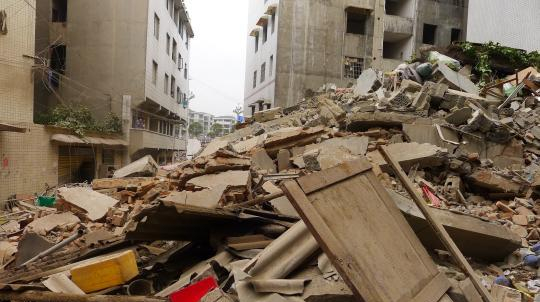 在現場看到,一片廢墟里散落著碎磚塊和居民家中的沙發、塑料凳、床單等物品,在廢墟四周已拉開了警戒線,當地消防、供電等部門正在現場有序調查了解情況,處置善后事宜。