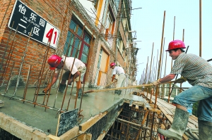 昨天,在通州區(qū)怡樂園二區(qū)綜合整治工程現(xiàn)場,北京城建的工人師傅正在緊張地進(jìn)行樓體南側(cè)加建部分混凝土首層頂板澆筑找平施工。該工程是通州區(qū)住建委在老舊小區(qū)怡樂園二區(qū)進(jìn)行的老舊房屋整治工程項(xiàng)目,涉及17032平方米樓體面積的抗震加固。經(jīng)過加固改造后抗震設(shè)防裂度為8度,安全等級達(dá)到二級。本報(bào)記者方非攝