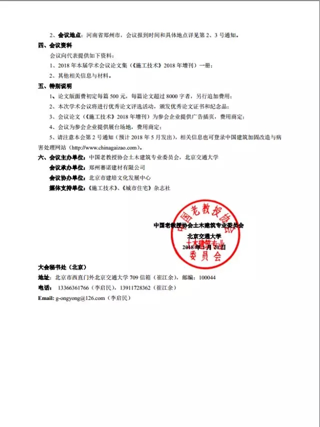 5、請注意本會第 2 號通知(預(yù)計 2018 年 5 月發(fā)出),相關(guān)信息也可登錄中國建筑加固改造與病害處理網(wǎng)站(http://www.chinagaizao.com)。