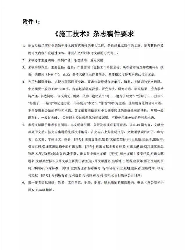 (2) 每篇論文 3000~6000 字,寫作要求及第一作者信息要求詳見附件 1——《施工技術(shù)》雜