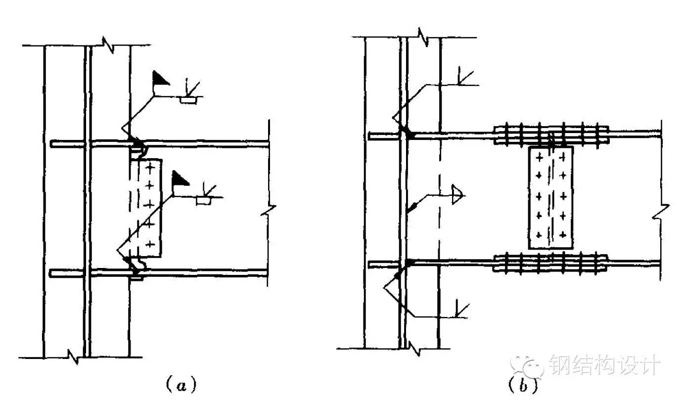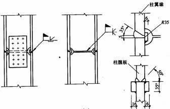 (2)梁翼緣與柱全熔透焊接,梁腹板與柱螺栓連接,即栓焊混合節點;