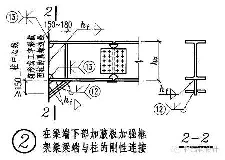 (1)工字形梁與工字形柱或箱形柱剛性連接的細部構造:
